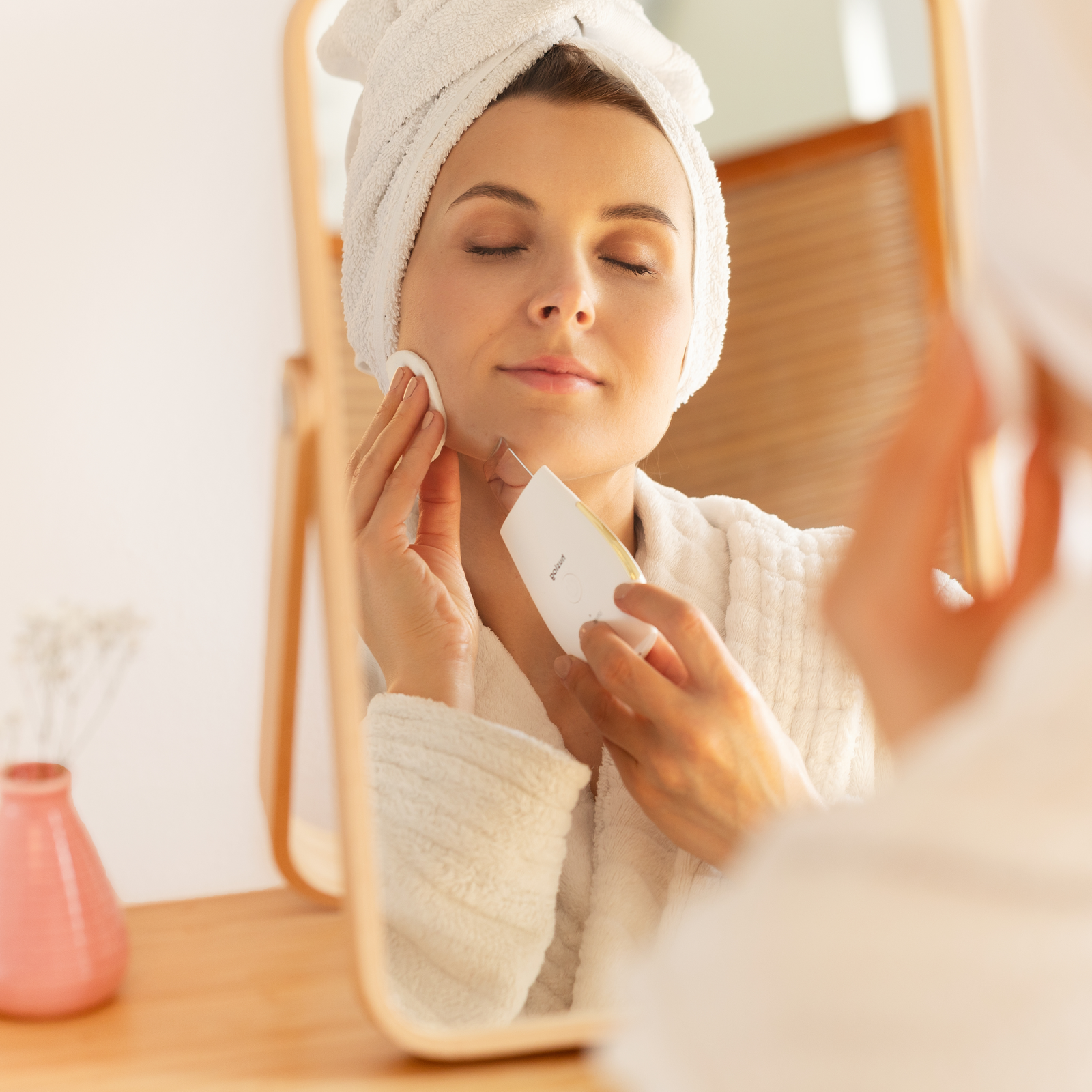Acțiunea dispozitivului vă face pielea extrem de netedă, suplă și pregătită pentru absorbția profundă a produselor cosmetice. Acțiunea cavitației are loc atunci când dispozitivul este utilizat pe pielea umedă, care, datorită generării undelor ultrasonice, dezvăluie un strat mai tânăr de piele.