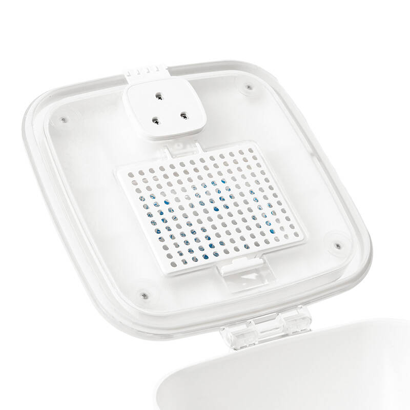 Optați pentru un dozator care păstrează alimentele proaspete. Garniturile de silicon cu care este echipat F04 STD garantează izolarea de aer și umiditate, prevenind apariția mucegaiului. Închiderea automată a orificiului de extracție protejează împotriva insectelor, iar recipientul încorporat cu desicant este responsabil de prospețimea fiecărei porții. De asemenea, nu trebuie să vă faceți griji cu privire la riscul de blocaje și blocaje alimentare, a căror dimensiune nu depășește 16 mm. În plus, castronul este fabricat din materiale sigure pentru animalele de companie, iar înclinarea la un unghi de 7° facilitează mâncarea pentru animalul dvs. de companie. Demontarea și curățarea dispozitivului se fac eficient și fără efort, iar cablul este rezistent la mușcături.